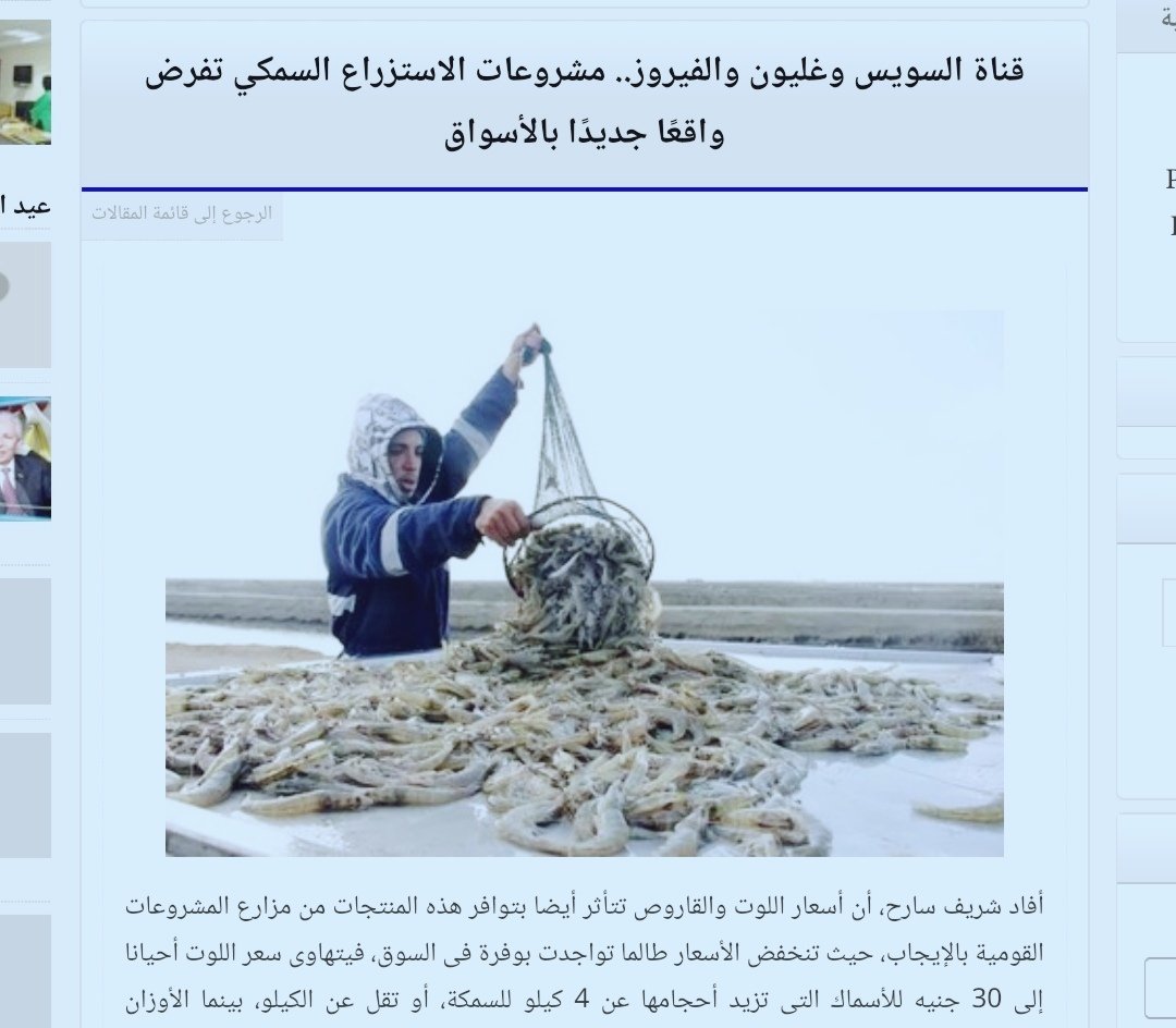 في ٢٣ / ١/ ٢٠٢١ افتتح عبدالفتاح السيسي بتكلفة تقارب ٦٠ مليار جنيه مشروع الفيروز للاستزراع السمكي الأضخم في العالم ببورسعيد