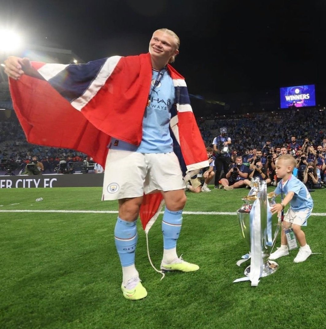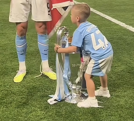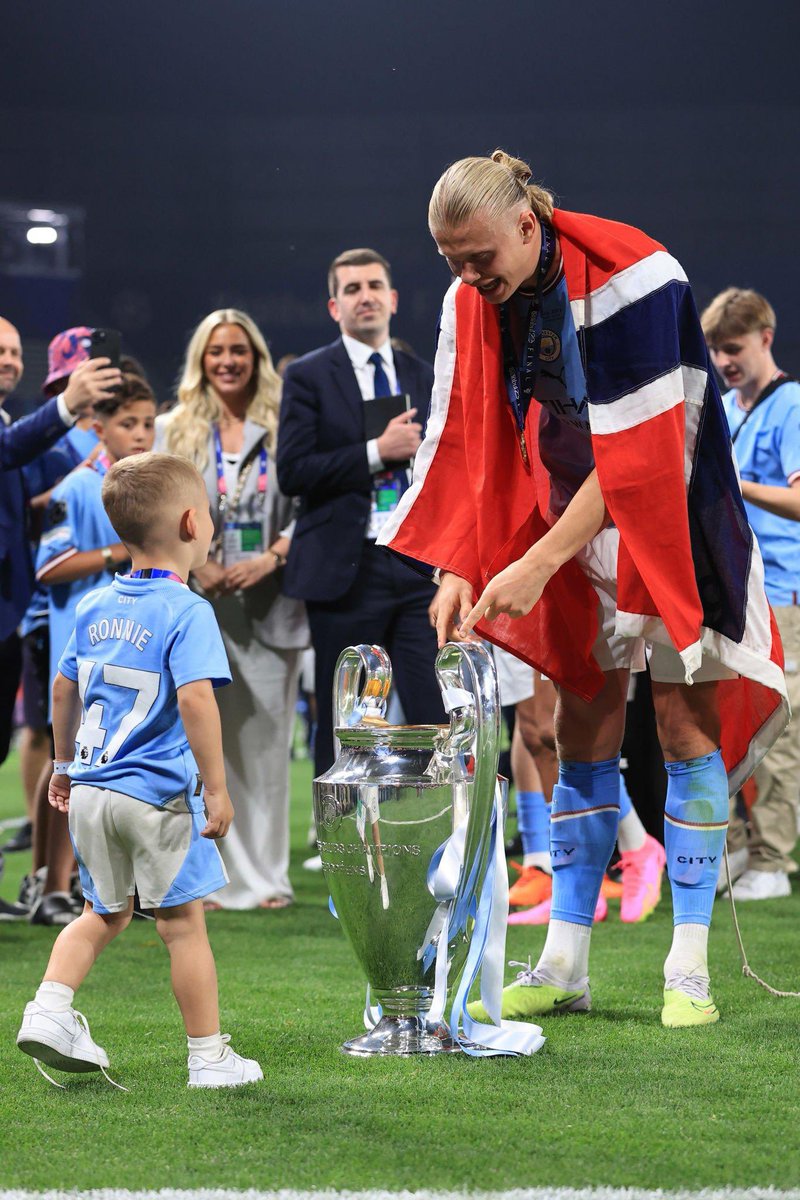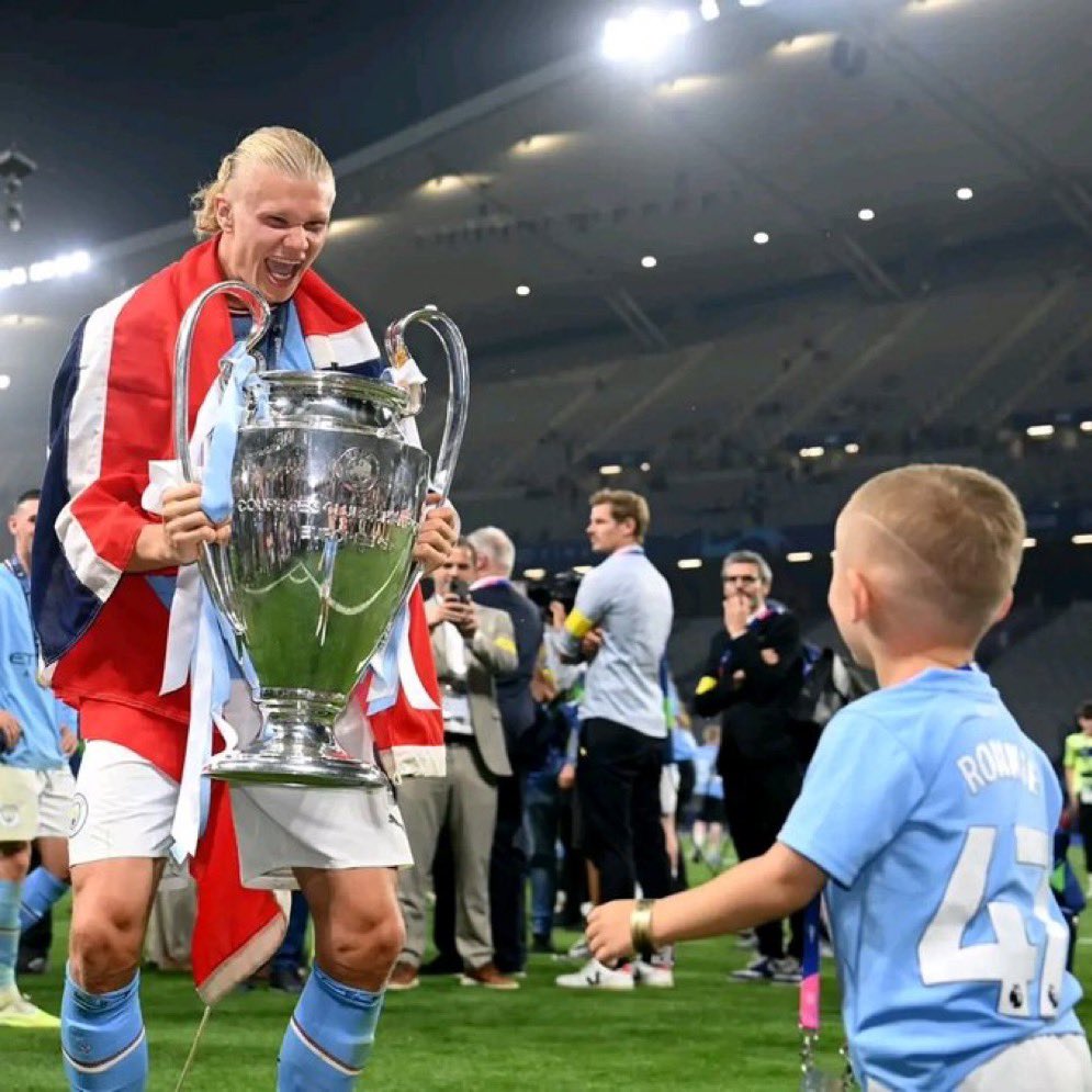 و هنا مع هالاند في الملعب مع الكاس 😭😭😭💙