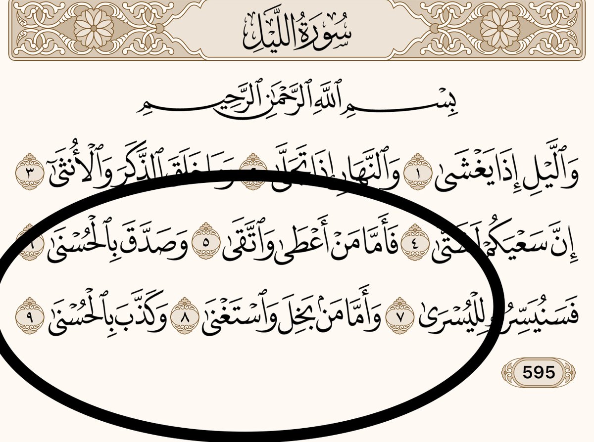 "فَأَمَّا مَنْ أَعْطَى وَاتَّقَى * وَصَدَّقَ بِالْحُسْنَى * فَسَنُيَسِّرُهُ لِلْيُسْرَى"، يخبرك القرآن بأن المبادرة والفعل هي أفضل طريقة للتعامل مع أسئلة المستقبل والأقدار؛ لا تشغل نفسك بسؤال ما سيحدث في المستقبل وما سيحدث فيه وهل ستكون صالحاً أو طالحاً، غنياً أم فقيراً؛