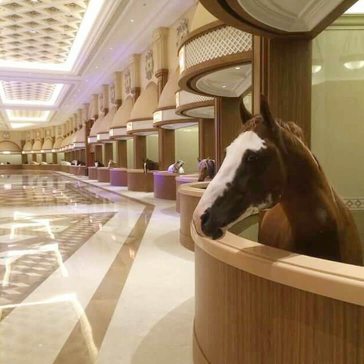 انتشر إسطبل خيول فاخر في الصين حديث وسائل التواصل الاجتماعي بعد ظهور صور للمنشأة تحتوي على ثريات وتماثيل وأرضيات من الرخام.