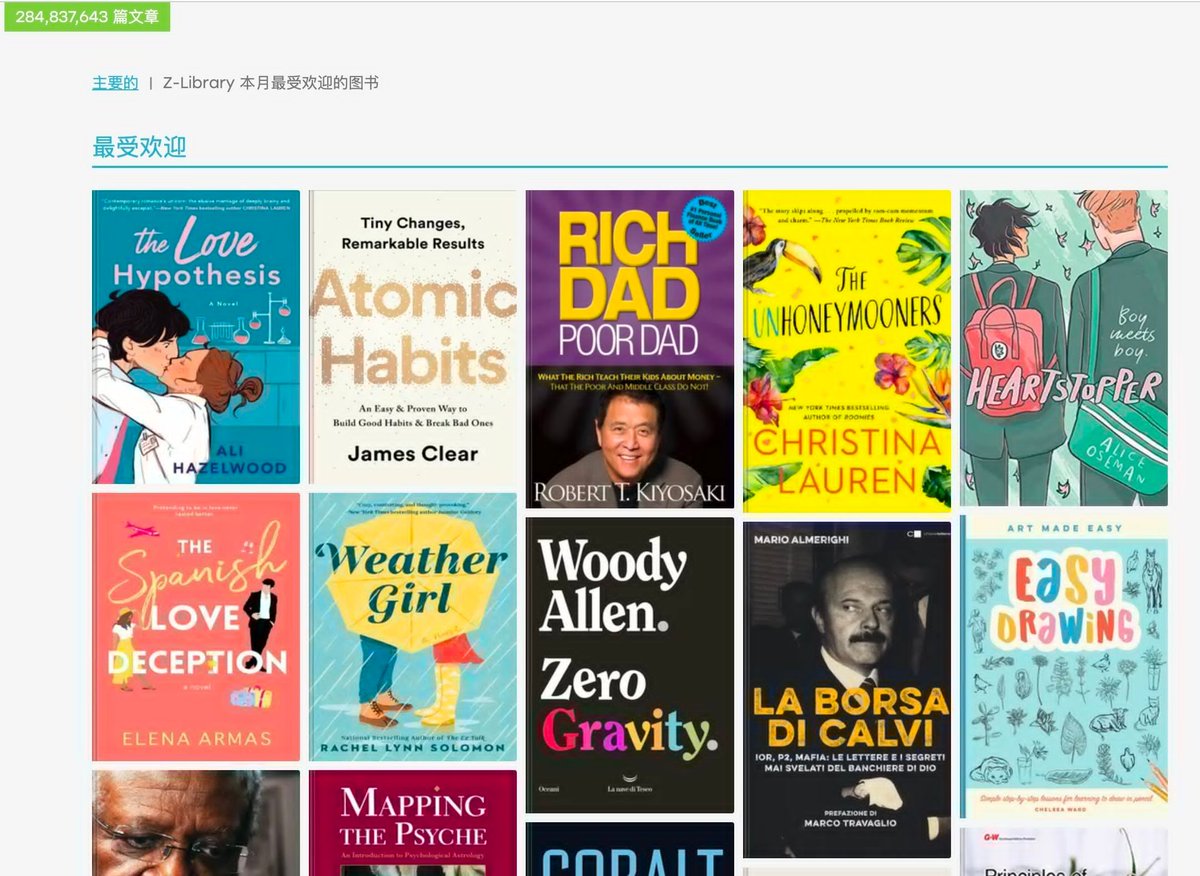 有近7700万本, 书籍是通过网络爬虫抓取,每天都在增长,包括期刊,杂志,指南等各种书 支持PDF、epub、mobi格式下载, 没有烦人广告和下载限制