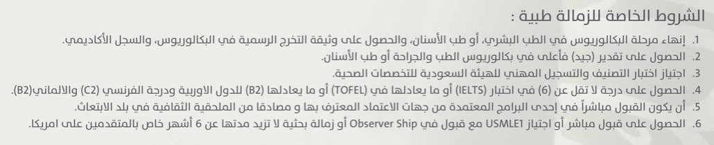 ٥- الحصول على قبول مباشر أو اجتياز USMLE1 مع قبول في Observership أو زمالة بحثية لا تزيد مدتها عن ٦ اشهر