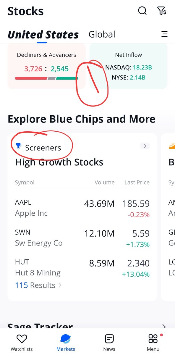 إذا فتحت التطبيق اتجه للسكنر وبتلقاه قدامك اضغط عليه وبتجد الأسهم التي طلعها لك الفلتر