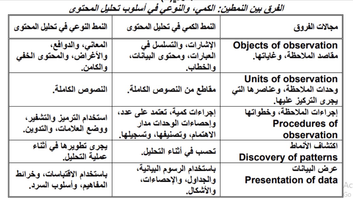 3️⃣فينتج النمط الكمي "أرقامًا"، يمكن معالجتها بطرائق إحصائية مختلفة؛ حيث يعنى هذا النمط بالمعنى الواضح للمحتوى.