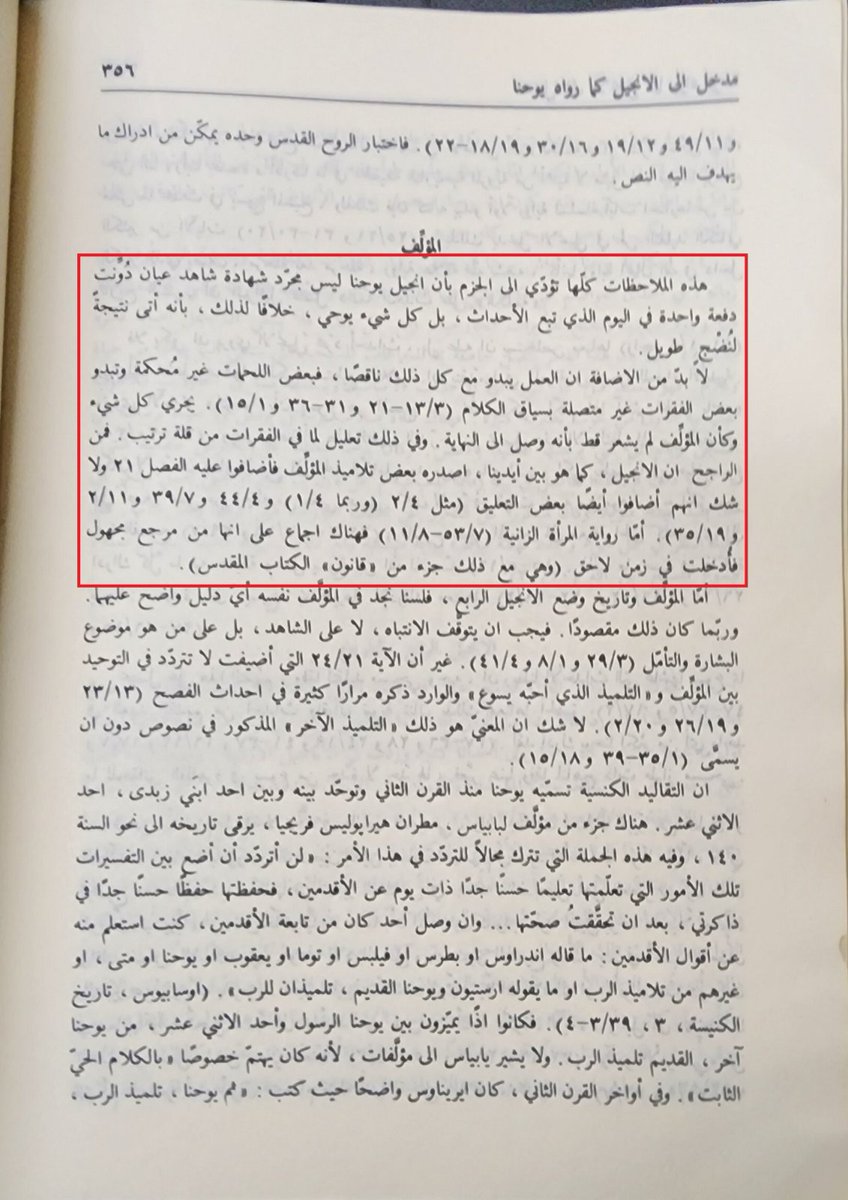 هذه الفقرة من مدخل "إنجيل القدّيس يوحنّا" هي إثبات أنّ التلميذ يوحنّا لم يكن كاتب الإنجيل