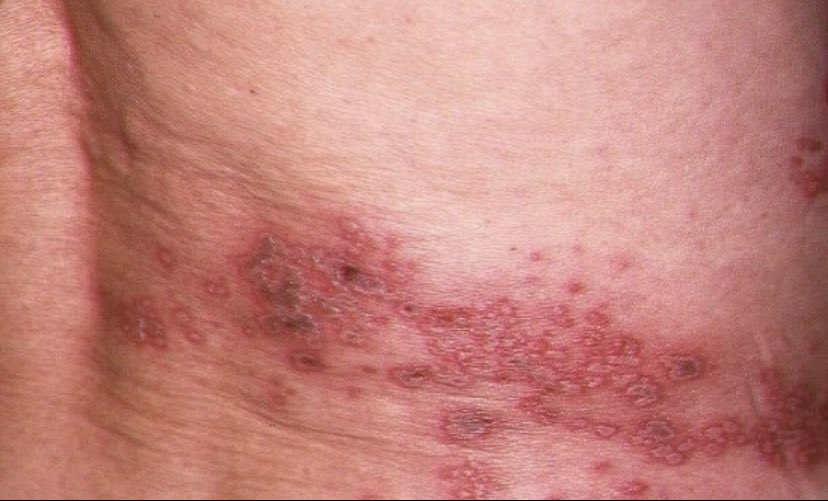 مرض الهربس النطاقي ينتج عن نشاط فايروس جدري الماء النطاقي وهو نفس الفايروس المسبب للعنقز