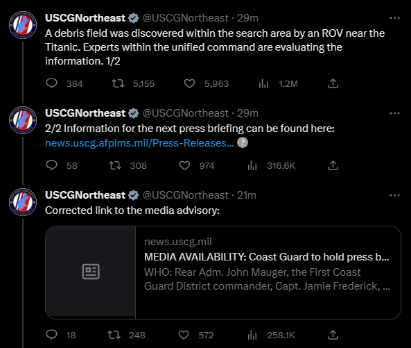 🔴سيقدم حرس السواحل الأمريكي بعد ساعة تحديثات عن الغواصة في مؤتمر صحفي..