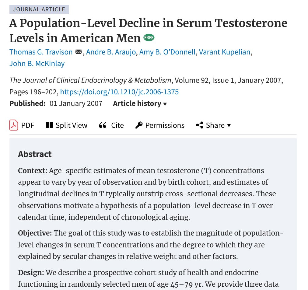 قام الباحثون بتحليل مستويات هرمون التستوستيرون في الدم التي تم قياسها على موجتين ، واحدة أجريت من 1987 إلى 1989 والأخرى من 2002 إلى 2004. سمح لهم ذلك بمقارنة مستويات هرمون التستوستيرون بين الفترتين الزمنيتين وتقييم أي تغييرات.