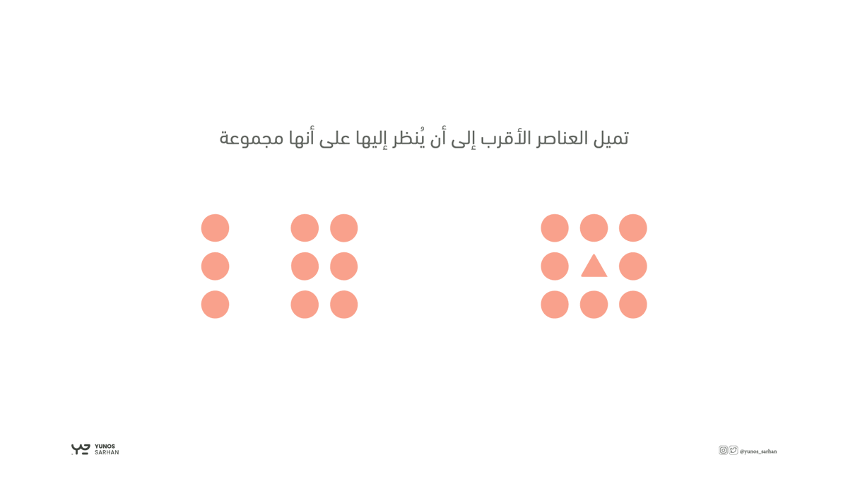 النظرية تقول ان العقل يعمل على ربط الأشياء المتقاربة ويصنفها كمجموعة حتى لو كانت مختلفه في الشكل او اللون