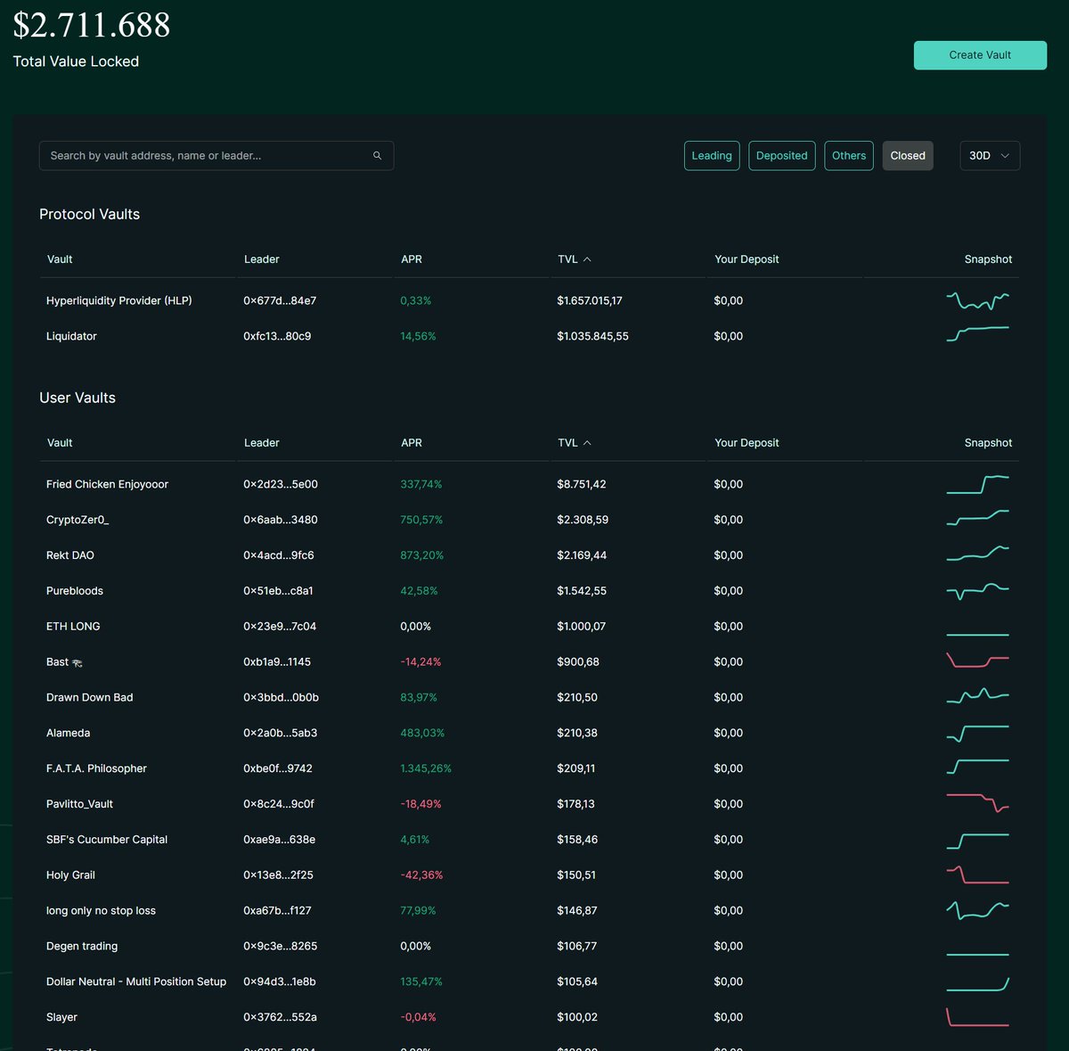 Depositing into a vault entitles you to earn a share of vault PnL.