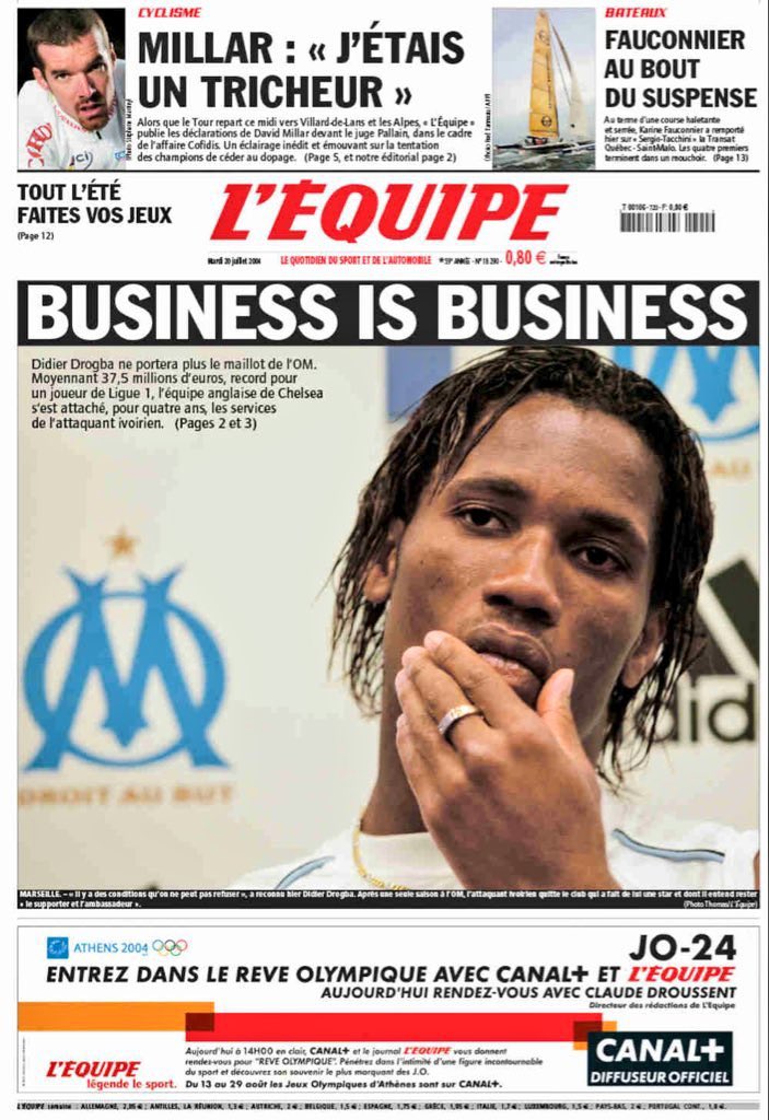 20 يوليو 2004 - بشكل رسمي تم إعلان توقيع الإيفواري دروغبا لاعباً لتشيلسي.