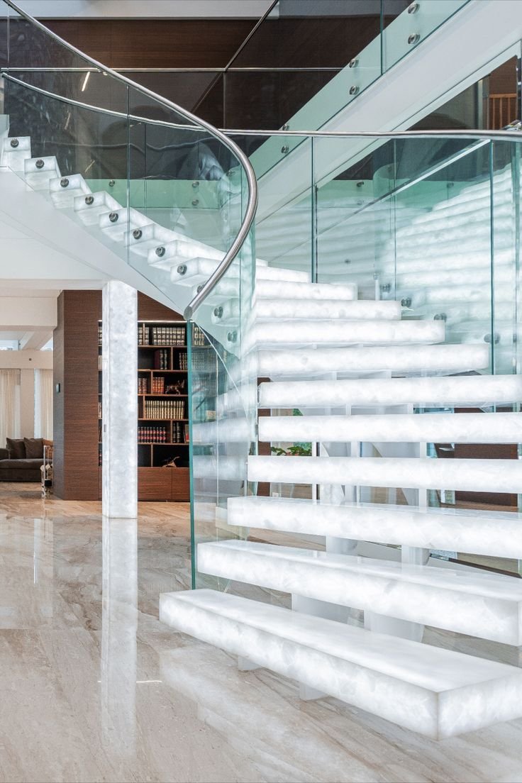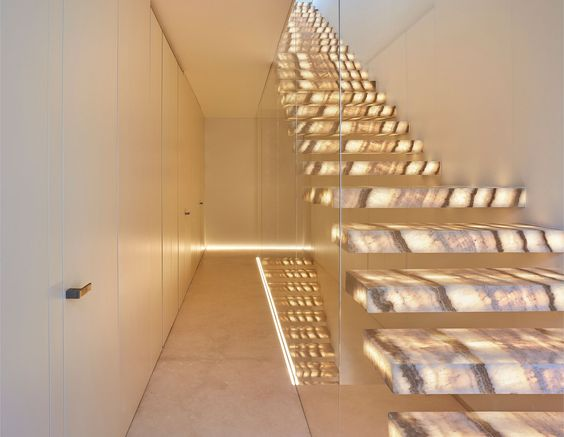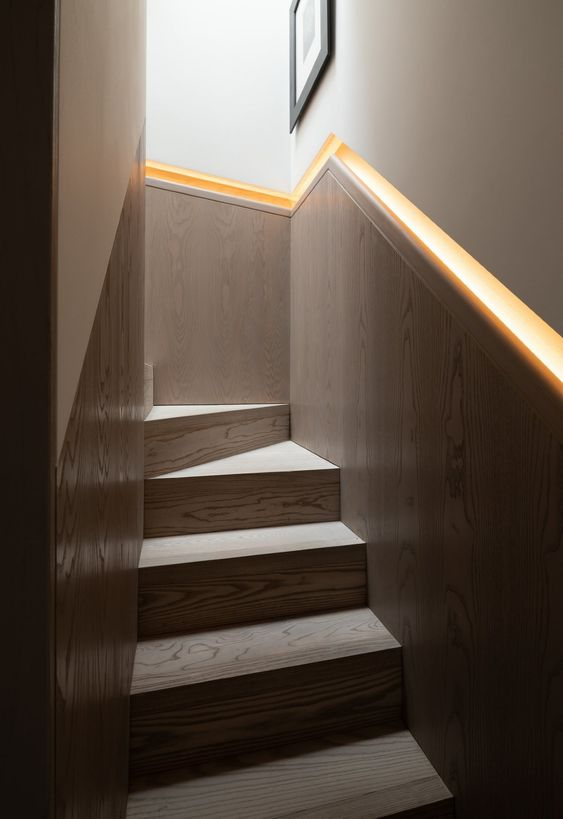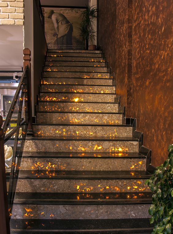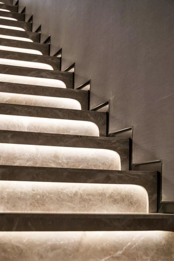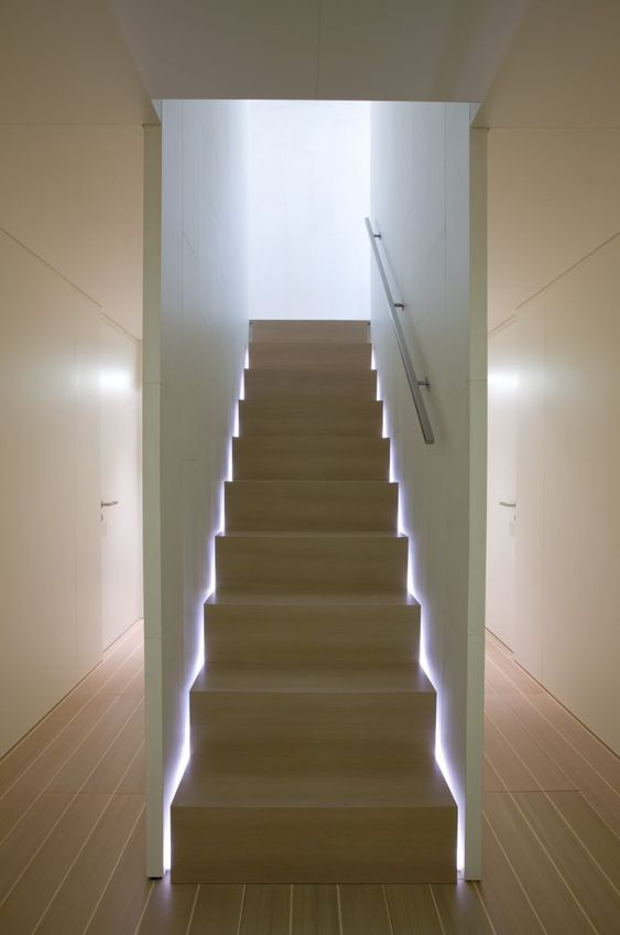 يمكن دمج اكثر من طريقة لاضاءة الدرج، لكن الاهم هو التصميم الجيد والمسبق ايضا التأسيس الجيد ووضع الصيانة في الاعتبار.