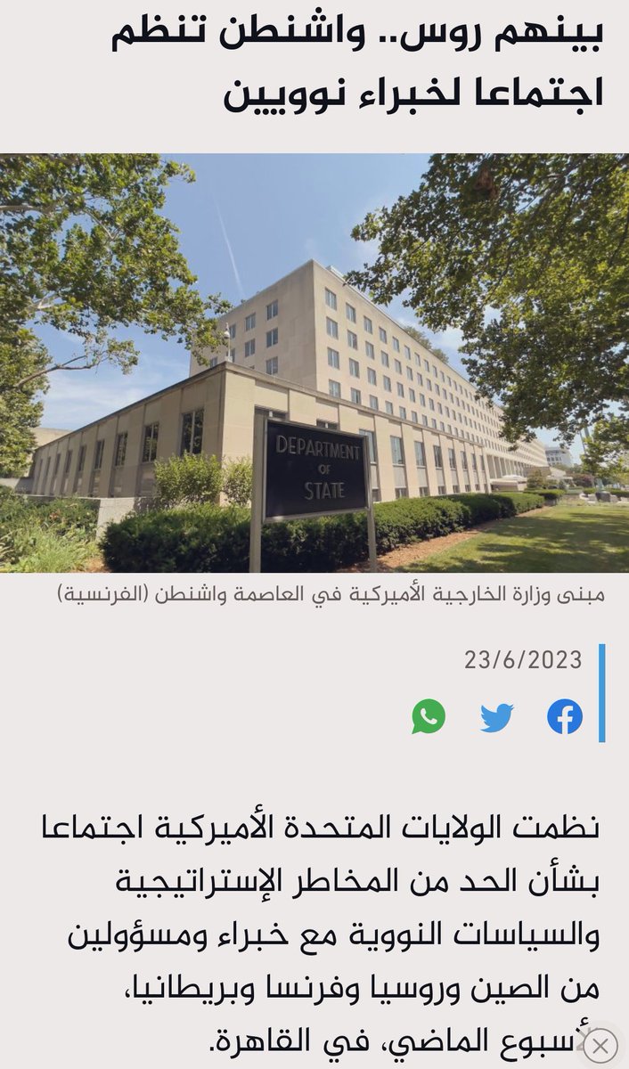صرح نائب وزير الخارجية الروسي بأنه ستنعقد اجتماعات اللجنة الاستشارية الثنائية الروسية الأمريكية بشأن معاهدة ستارت في #القاهرة منتصف يوليو وتستمر المفاوضات قرابة أسبوع
