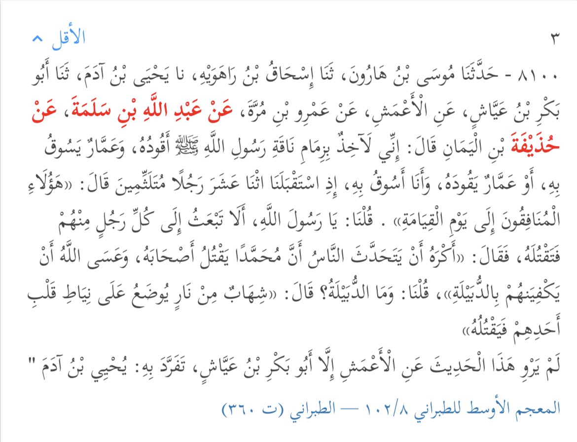 هذا الخبر يحوي تفاصيل سر «حذيفة بن اليمان» و «أبُي بن كعب» الذي رُوي بشكل مجمل في «التراث السُني»، وقد وعدناكم سابقاً بشرح هذا الأسرار من «التراث الإمامي».