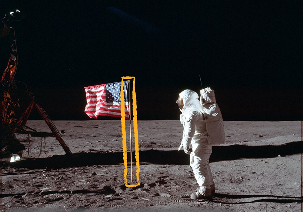 Se suponía que los astronautas debían enterrar la bandera a una profundidad de 18" y para eso había una marca en el asta, pero solo fueron capaces de enterrar la misma a unas 6 o 9", pero