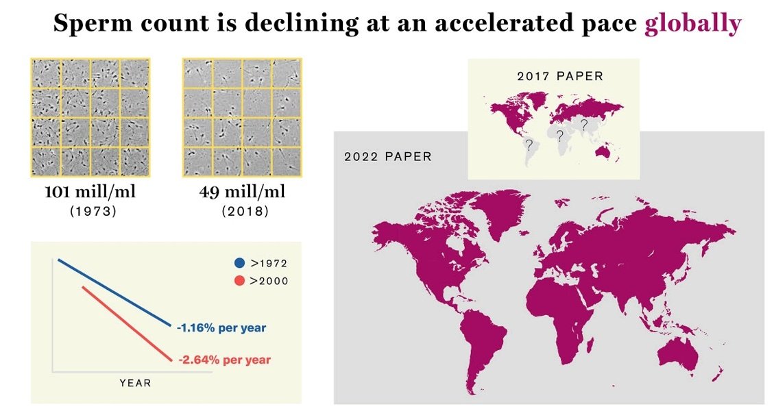بعض الأسباب المتوقعه يعود لنمط الحياة .. التعرض لاشعاعات مستمر.. تلوث البيئة .. استخدام مواد مؤثرة على الانجاب في بعض الصناعات الحديثه مثل البلاستيك والمواد الكيماوية وغيرها.