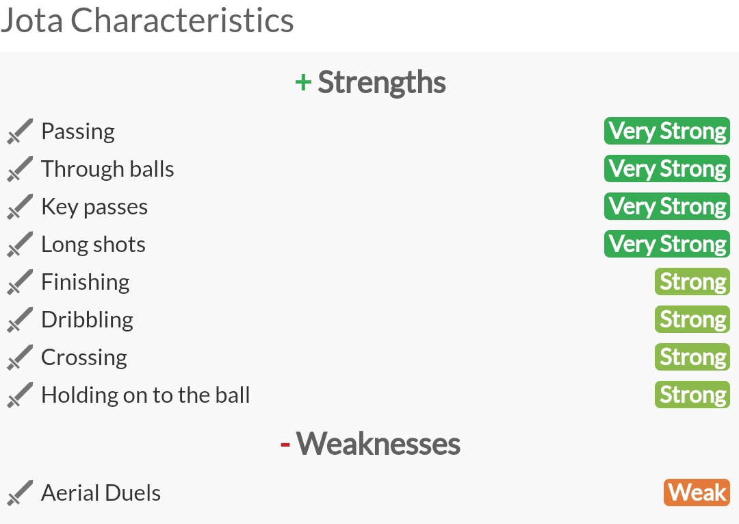 «نقاط القوة والضعف» لـ جوتا من WhoScored