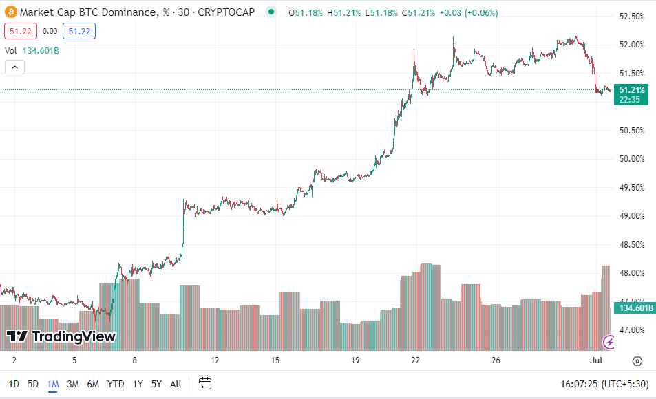 Now the most important question is whether an altseason has started, and there are a few signs that are currently in the alts favour and are indicating a good run in altcoins.
