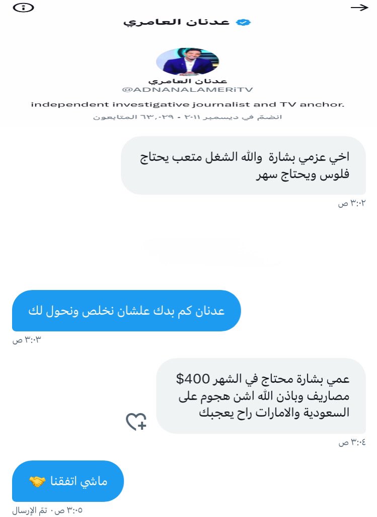 @ADNANALAMERiTV تم اختراق حساب عدنان العميل للجهاز الاستخبارات الاسرائيلي عن طريق عزمي بشارة هذي بعض المحادثات الموجودة المراسله بينه وبين عزمي ومازال هناك الكثير ولو رجل لا تحظر فيه مفاجئات😉😄