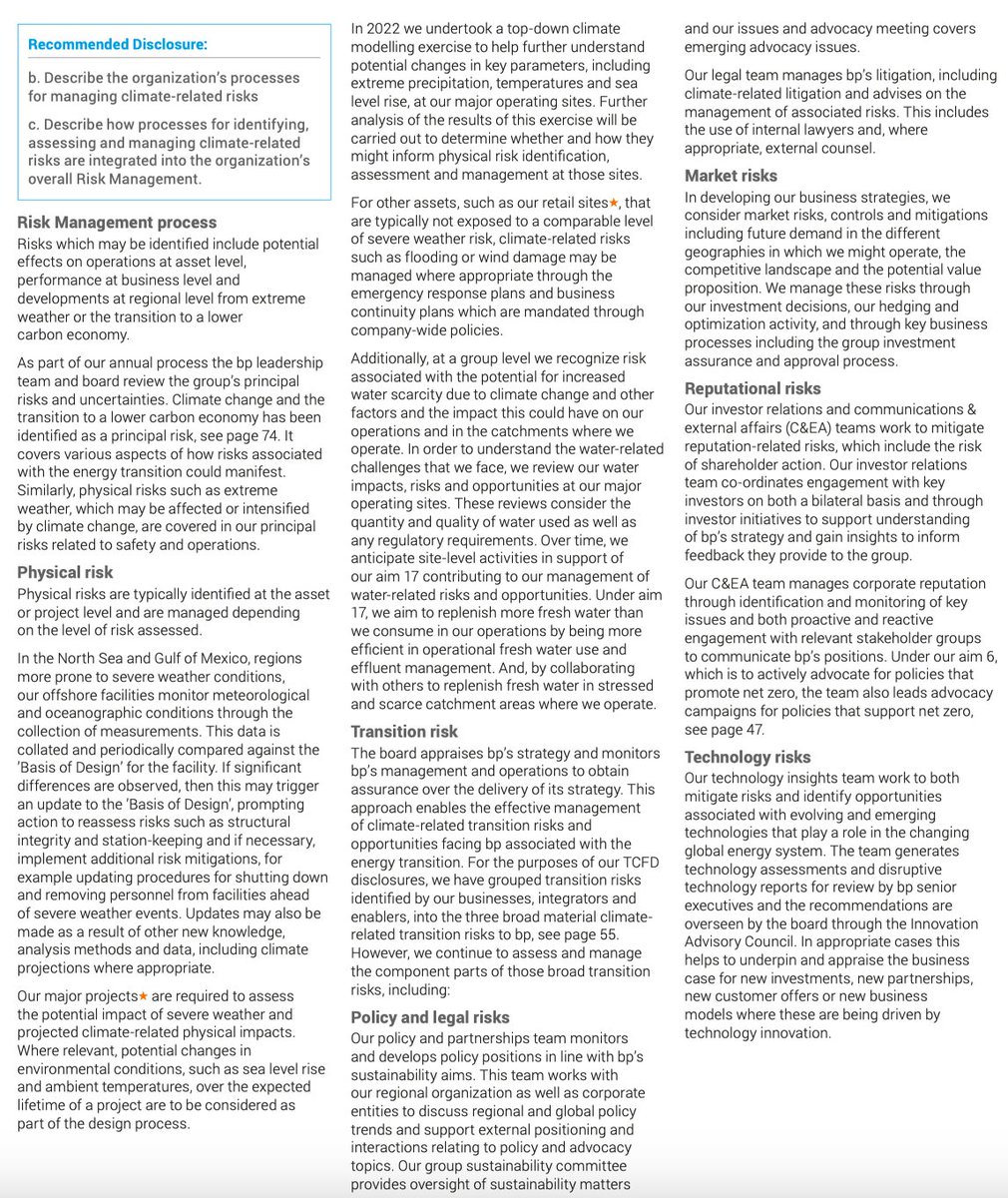 شركة تعمل في صناعة النفط وقررت الاستثمار أكثر في مشاريع الطاقة المتجددة، فهنا يجب الإفصاح عن المخاطر والفُرص المُرتبطة بذلك، مثل تحليل التأثير البيئي لمشاريع الطاقة المتجددة، وتقييم الشراكات المحتملة مع موردي الطاقة المتجددة، وتحديد فرص النمو والابتكار المُستدامة.