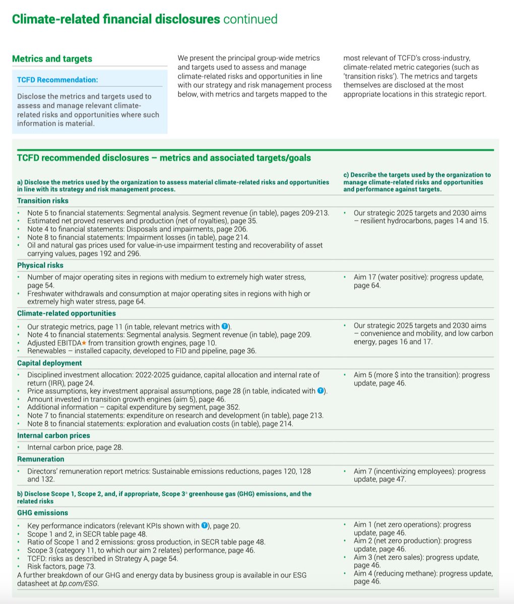 وهنا يجب الافصاح أيضًا عن الأصول التي تتأثر بالمخاطر المادية والانتقالية، حجم النفقات الرأسمالية تجاه المخاطر والفُرص المُرتبطة بالمناخ، وحجم مكافأت الإدارة العُليا المُرتبطة بهذه المُؤشرات.