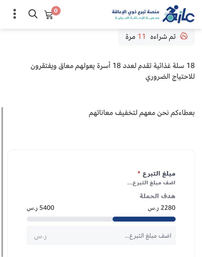 لمن يريد المساعدة بـ 18 سلة غذائية لـ 18 أسرة يعيلهم معاق .. فقط بـ 10 ريال!