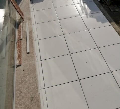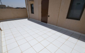 🔟 إعداد سطح البلاط باستخدام الرمل وتركيب بلاط السطح مع إنشاء ميول وتركيب فواصل التمدد.