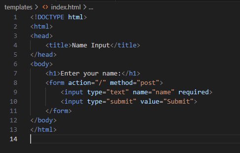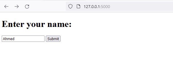 تستقبل فقط POST request والي منطقياً جايه من index.html، تاخذ قيمة الـ name وترجع Hi name داخل h1 هتمل تاق