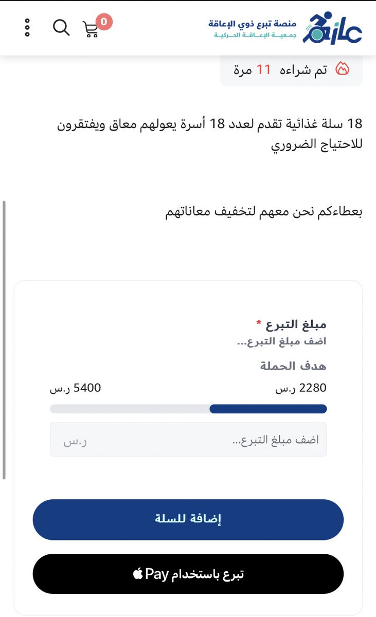 لمن يريد المساعدة بـ 18 سلة غذائية لـ 18 أسرة يعيلهم معاق .. فقط بـ 10 ريال!
