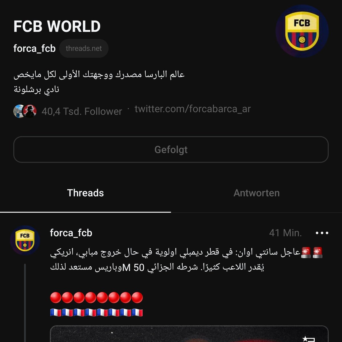 @forcabarca_ar @RM4Arab @FabrizioRomano لا زالت الصحف الالمانية والفضائيات مثل شبيغل و بيلد و ZDF و حسابات اخرى كثيرة لم تنضم لتطبيق #ثريدز