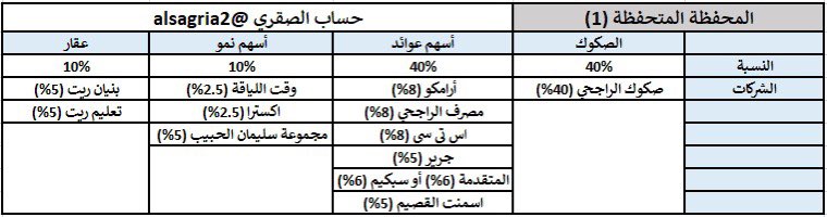 🔹راح تقسم الاختيارات على عدد من المحافظ: وكل مستثمر يختار المحفظة بناء على ظروفه: