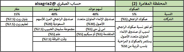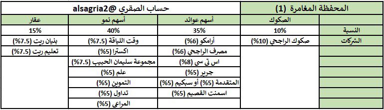 🔹جميع الأسهم موافقة للضوابط الشرعية من اللجنة الشرعية في الراجحي المالية وقت كتابة التغريدة (راجع بنفسك وتأكد قبل الشراء)