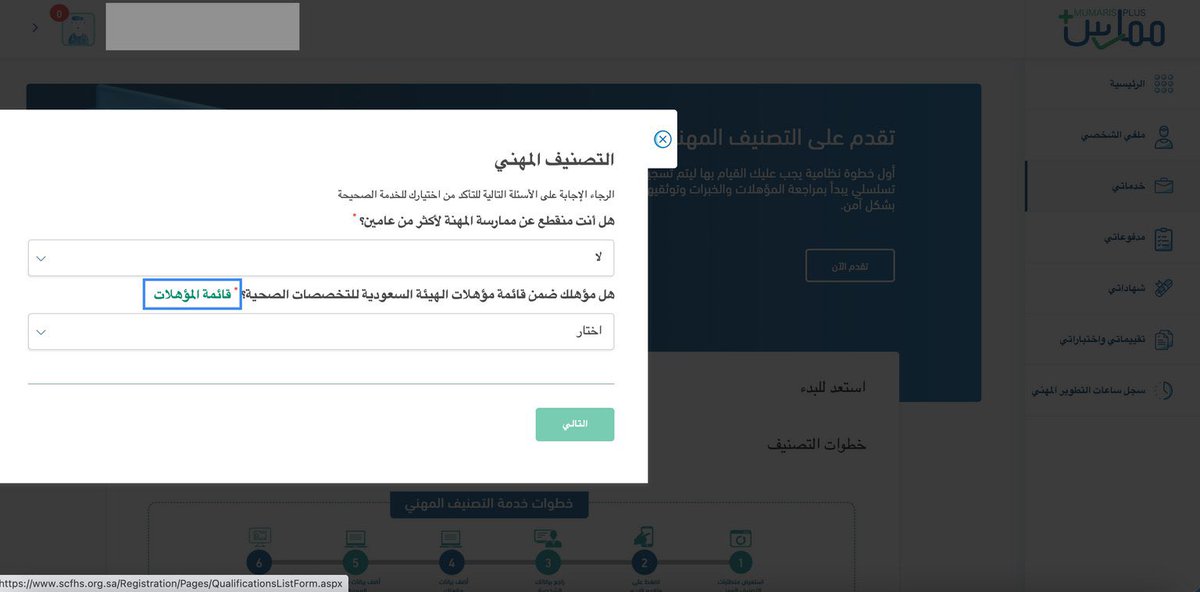 التصنيف المهني هو الخطوة الأولى للممارس الصحي بعد التخرج وانهاء سنة الامتياز عشان يقدر يمارس المهنة ويقدم على الوظائف