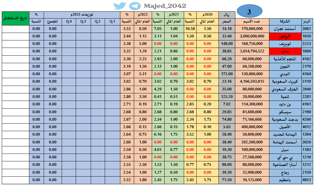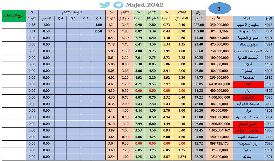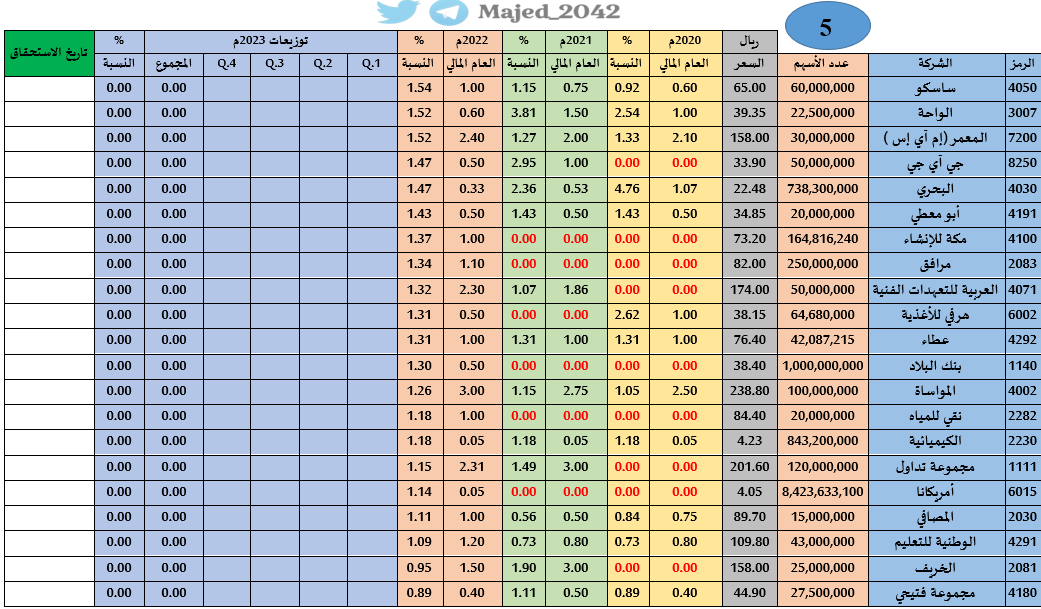 🔹تم إضافة توزيعات ٢٠٢٠م-٢٠٢١م-٢٠٢٢م