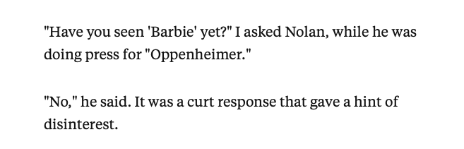 Christopher Nolan is reportedly upset that Warner Bros is releasing #Barbie on the same day as #Oppenheimer