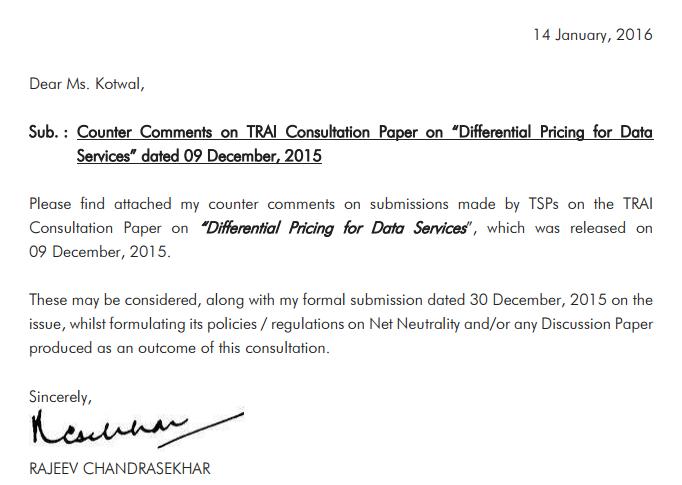 In almost every area of Digital public policy making - I have responded with my views publicly n transparently as in @TRAI ‘s consultations on Differential prices for Data services and #NetNeutrality