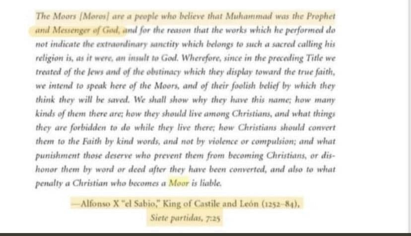 تعريف المور في عصر ألفونسو العاشر على أنهم الأشخاص الذين يؤمنون بأن محمد صلى الله عليه وسلم نبي و رسول الله.