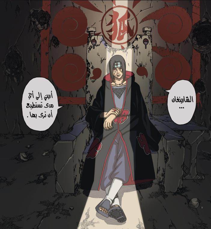 -اولاً: تبرير لساسكي كيف حصل ايتاشي على المانغينكو وهي بااخباره بانه قام بقتـ. ـل صديقه المقرب شيسوي كي يحصل عليها.