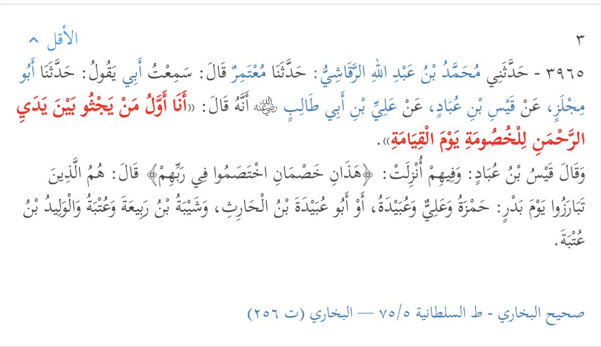 لذلك سيكون أمير المؤمنين (ع) أول من يجثوا بين يدي الرحمن للخصومة يوم القيامة، فنرجوا تأمل سبب كون خصومة علي (ع) هي أول خصومة بين يدي الرحمن يوم القيامة؟