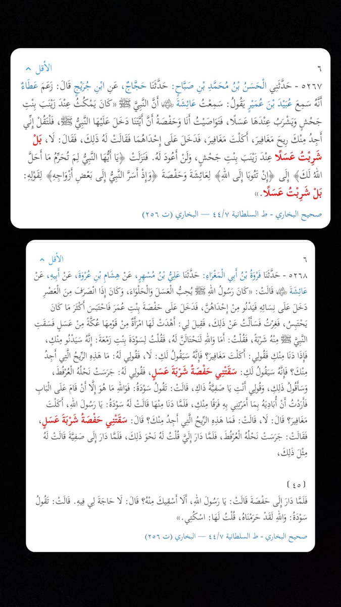 ٢. تحريم العسل.