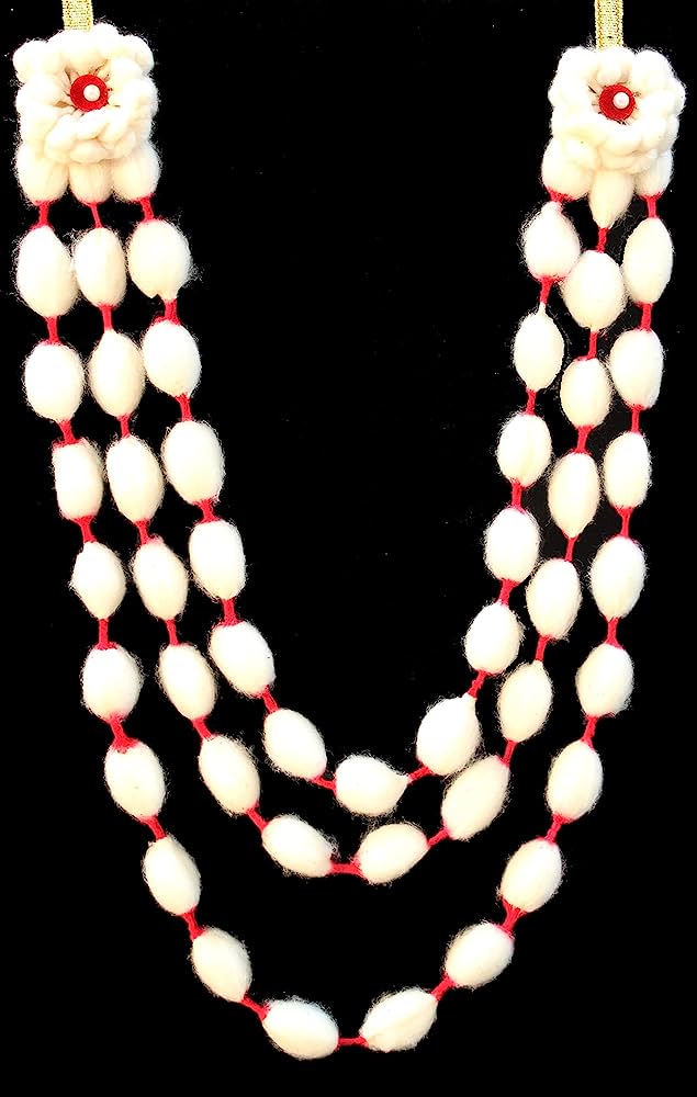 5- कपास वस्त्र/माला :- सूती वस्त्र कुंडलिनी (ब्रह्मांडीय ऊर्जा प्रणाली) की सुषुम्ना नाड़ी का प्रतिनिधित्व करता है और वस्त्र में सात सूती मोती सन्निहित आत्मा के शरीर में कुंडलिनी प्रणाली के सात केंद्रों से जुड़े होते हैं। इन मोतियों को जोड़ने वाला सूती धागा पूरे शरीर को सत्व…