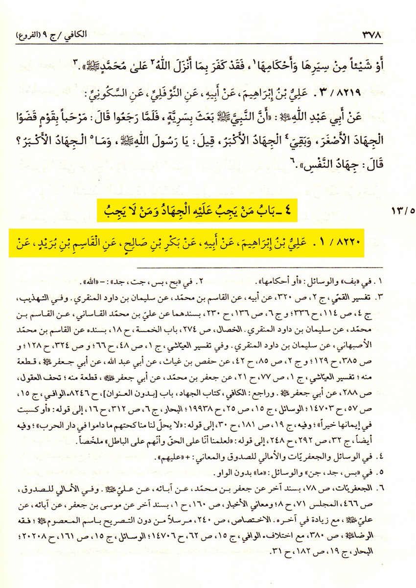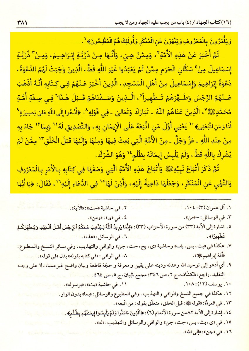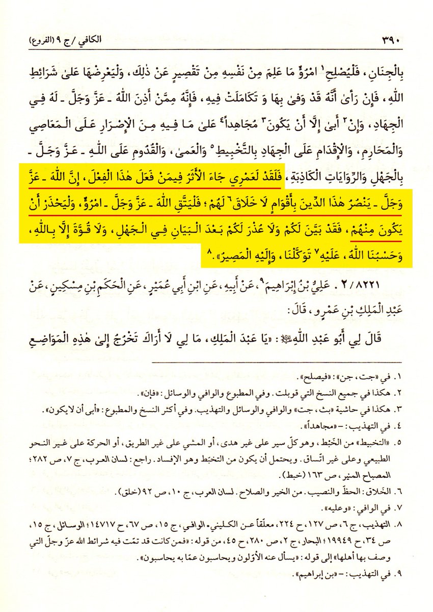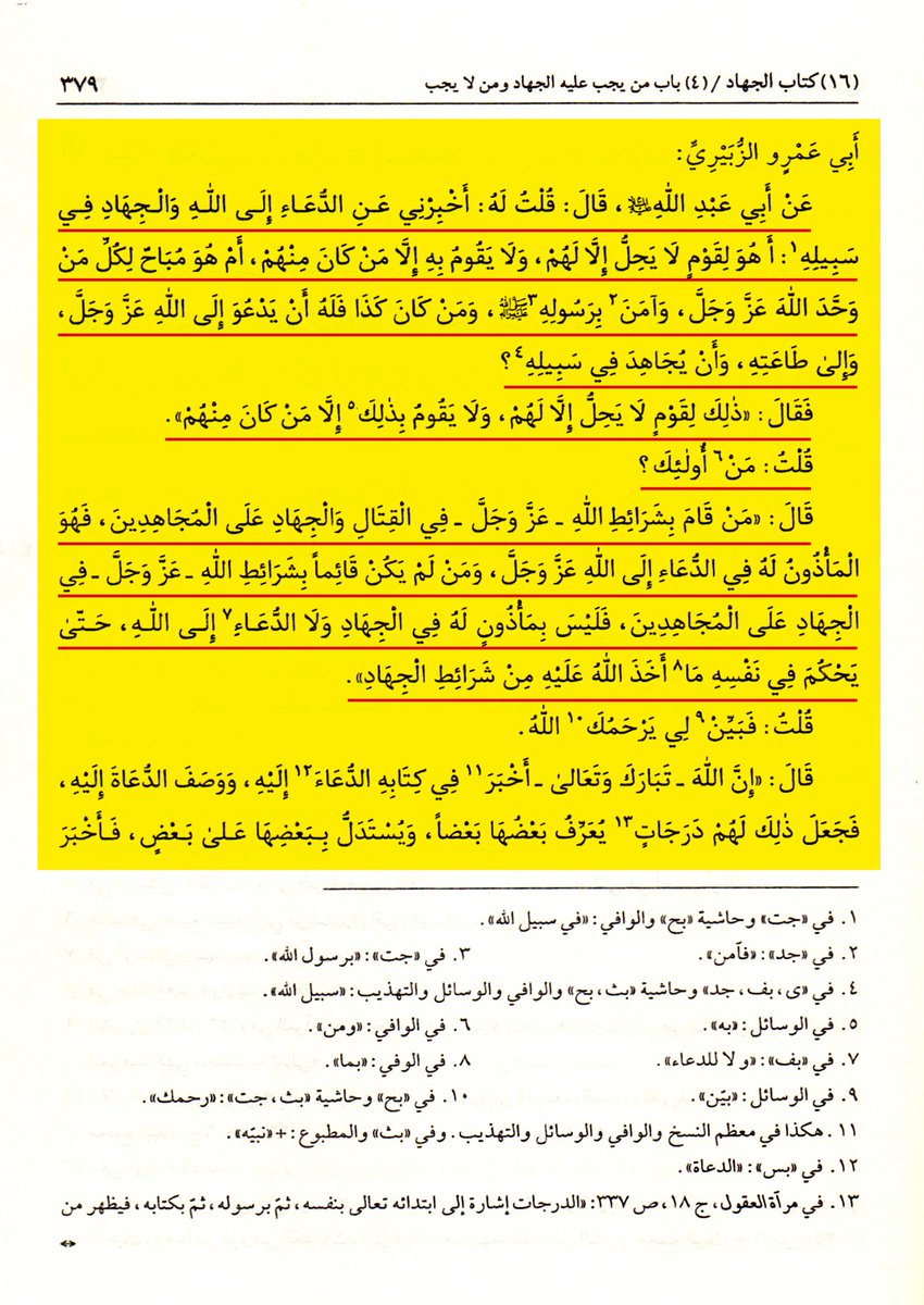 وتستمر الرواية في بيان أوصاف من تحل لهم الدعوة إلى الجهاد، اقرؤوا هذه الأوصاف والآيات التي استشهد بها الإمام الصادق عليه السلام على أوصافهم، وهي تكذِّب ما ادعاه العريبي 👇🏻