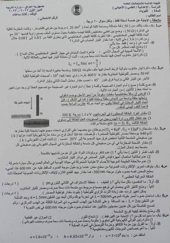 اليكم النسخة الاصلية، والنسخة المطبوعة التي انتشرت على نطاق ضيق يوم أمس على شكل مرشحات وبأختلاف ترتيب الاسئلة #فضيحه_تسريب_الفيزياء