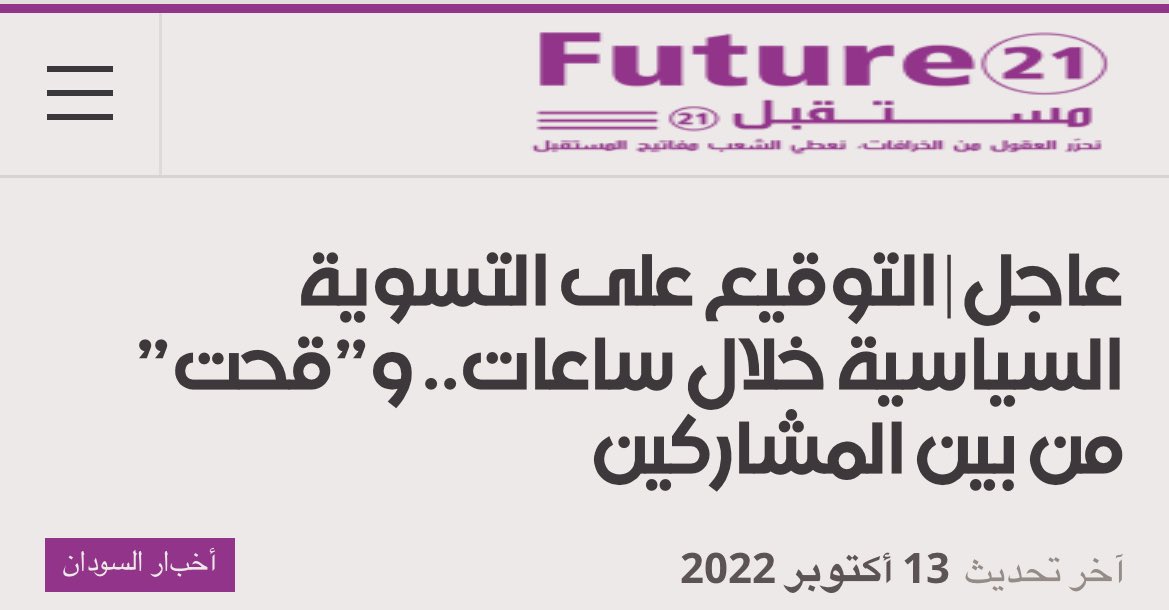 على تجميع كلمة المدنيين لمواجهة الخطر والكل لازم ياخد خطوة للوراء ويدي للجيش مساحته لحماية البلاد. معادش في مساحة لفلسفة "قحت" واخواتها ، العكس هو الصحيح، رفع السودانيين هاشتاج #قحت_لا_تمثلني,رافعين هشتاج #جمعة_تفويض_الجيش، بعد 4سنين يهينوا جيشهم ويساعدوا الأجانب