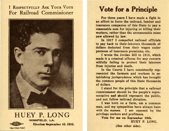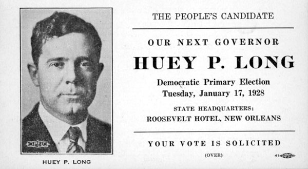 Nel 1923 Long annuncia la sua candidatura per il governatorato.