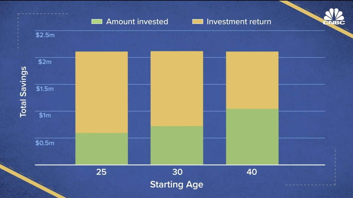 و الحسبة هي خطة على بعمر 25 سنة و افتراض ان بتقاعد بعمر 65 سنة ، بعائد استثماري قدره من 6% الى 3% سنوياً و مع مبلغ من الاستثمار الشهري.