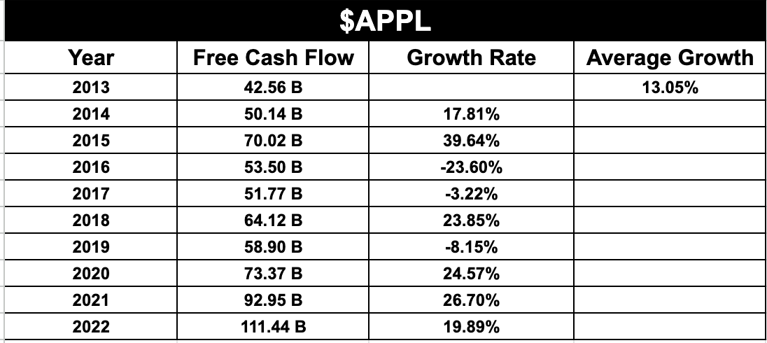 واضح لنا أن متوسط نمو أرباح #أبل تقريبا 13% سنويا