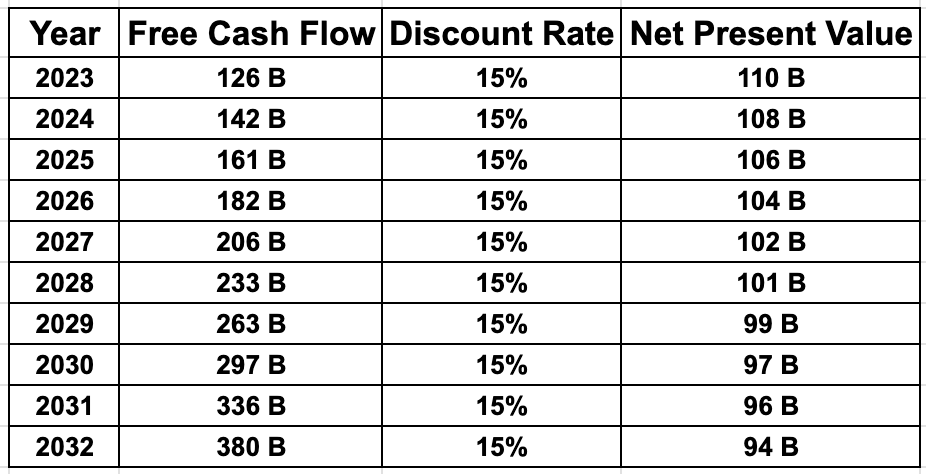 الآن نجمع كل أرباح العشرة سنوات على قيمة الـ Terminal Value