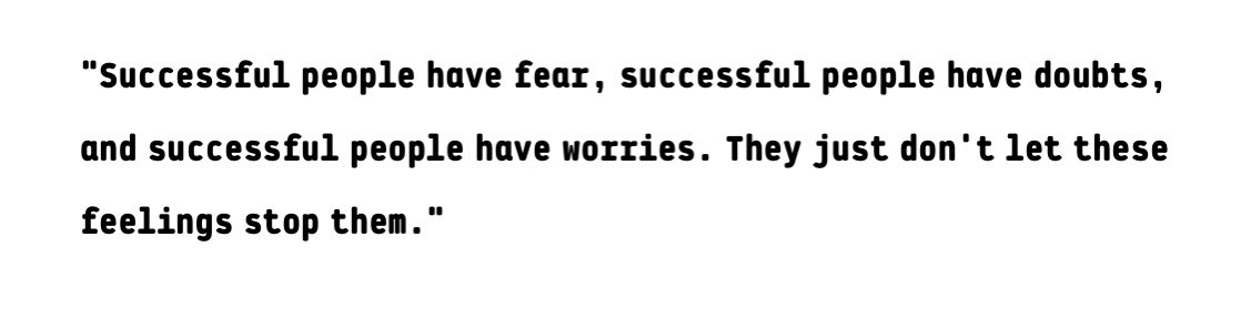 "الأشخاص الناجحون يشعرون بالخوف والشك والقلق، لكنهم لا يسمحون لهذه المشاعر بإيقافهم."