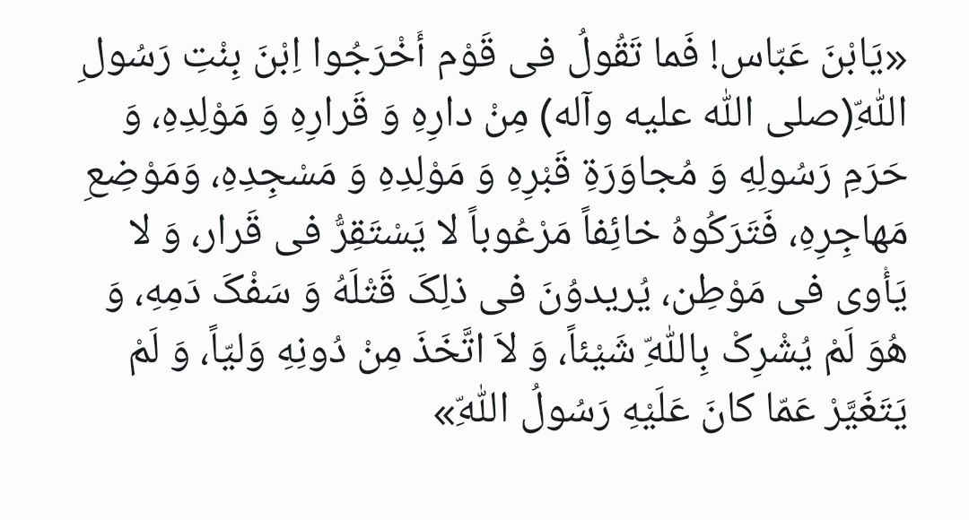 ۸- چون اینان قصد جان مرا دارند و من نگران و هراسان فقط در پی پناهگاهی میگردم بدون اینکه در جایی آسایش یا در دیاری پناهی پیدا کنم! آیا این جملات از روی ناچاری نسبتی با یک ذهنیت آماده برای قیام و تصاحب حکومت به شکل مسلحانه دارد؟